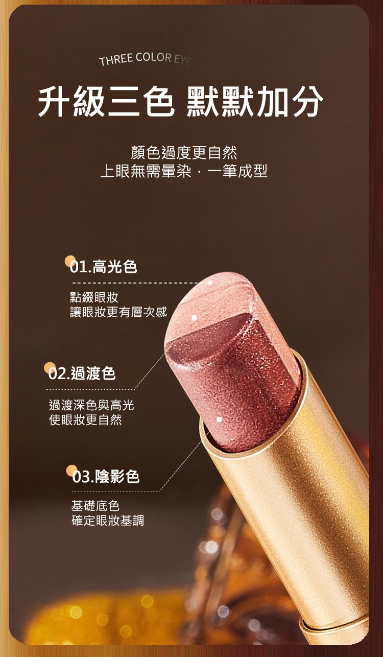 20分鐘前【限時特惠70%!買1送1,支持貨到付款】手殘黨救星,一抹成形!「三色眼影棒」高光+陰影+過渡色//台灣獨家熱賣 - 【賠錢特惠 買二送二】-NT$ 1,099