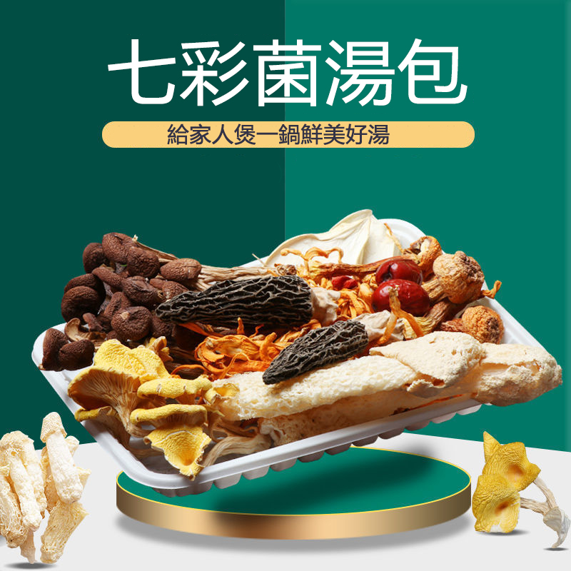 20分鐘前七彩菌湯包,來自深山的菌湯美味!【滋補佳品 無熏硫,煲湯,燉煮入味的家庭神器 】滋補養生,鮮香濃郁,菌體肥嫩,好食材, 科學配比, 免去選材煩惱! - 自然無硫熏,無添加食用更安心! [秋冬 季節必備的七彩野生菌湯包x10=NT$1150 ]