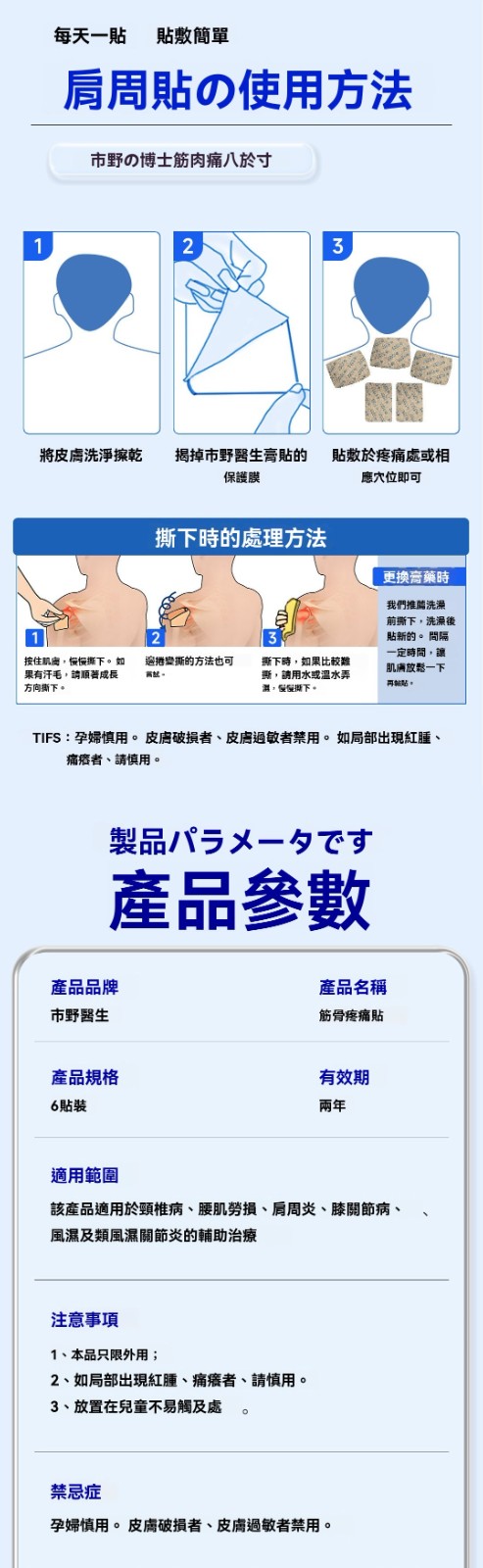 半小時前市野醫生緩解關節疼痛肩周貼,多種原材合理搭配製成,柔軟貼合,長時貼敷、深入肌膚呵護,早用早好。 - 【二療程 治療腿疼肩胛疼】買二送三-NT$1200