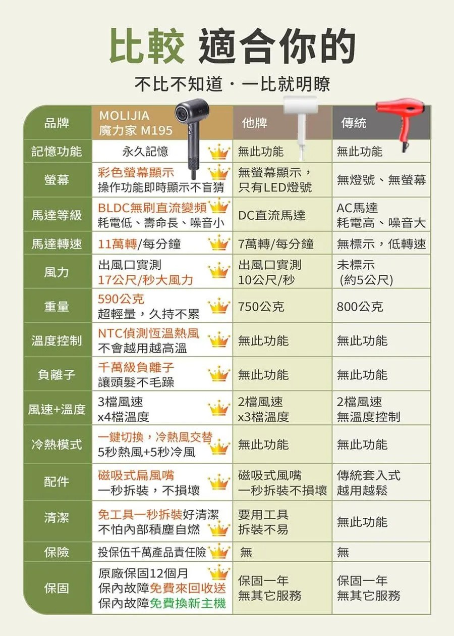 半小時前M195 負離子恆溫高速吹風機 乾髮護髮,一次搞定 - 優惠價一入組NT$1398