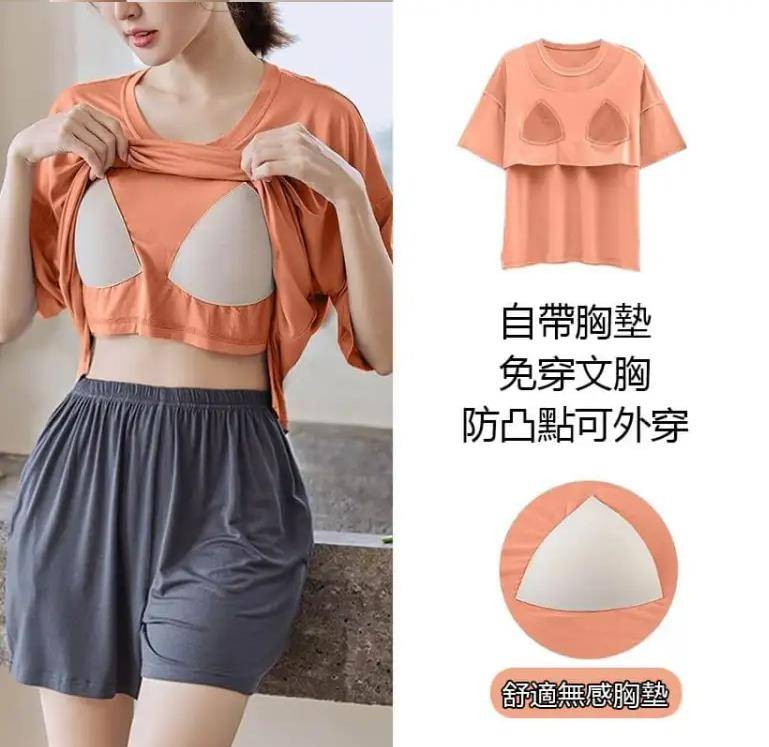 半小時前帶胸墊睡衣防走光睡衣女夏季短袖短褲薄款寬鬆家居服裝 - 【買一送一】 2入組 NT$1098【均價NT$549】